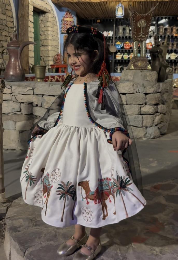 هذا الفستان من لؤلؤةالمملكة يُسلط الضوء على الجمال والتقدير للتراث السعودي، مانحًا الفتيات الحس بالتميز والاعتزاز في يوم يُخلد ذكرى تأسيس الوطن 🎊👑