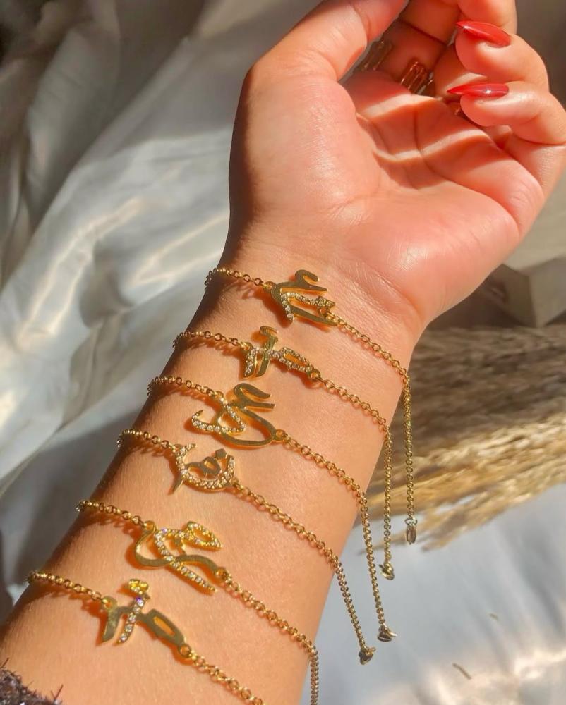 اسواره بتصميم جميل تعبر عن حبك لمن تحب تصميم الحروف حسب الطلبمطرز زركون انيقمطلي ذهب عيار 21ضمان اللون ثابت من لؤلؤة ياتي بتغليف انيق ومميز