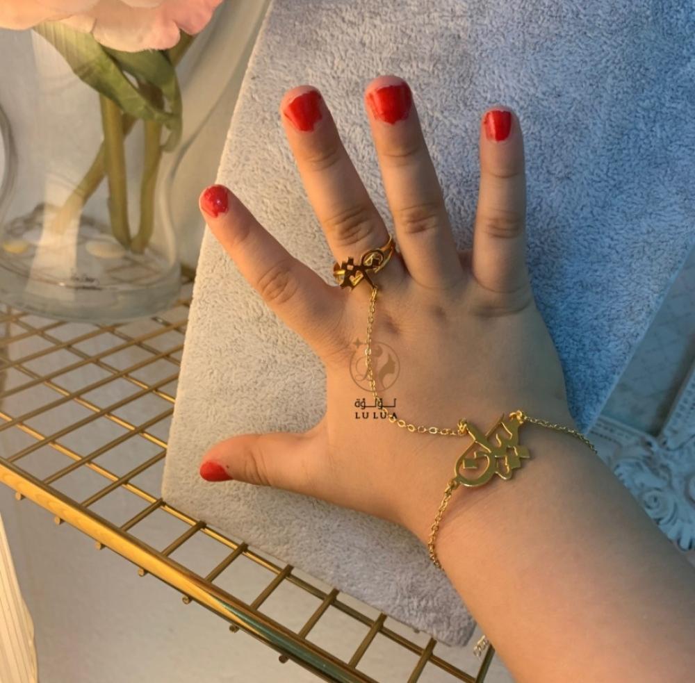 تفاصيل المنتج:1-امكانيه كتابه الاسم حسب2- الطلب .سهلة التحكم بالمقاس.3-متوفر باللونين ذهبي او فضي .يطلاء3-ذهب عيار 21 قيراط .مضمون مايتغير4-لون .هياتيكم بتغليف5-شيك وجميل من لؤلؤةالمملكة