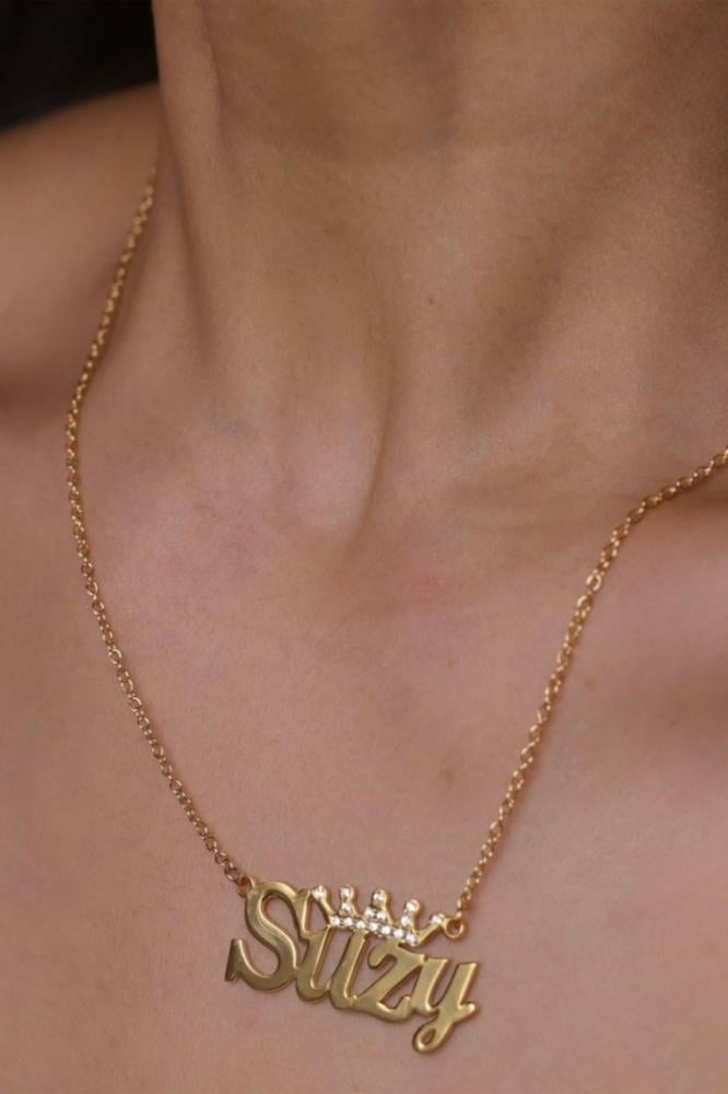 سلسال بتصميم التاج مع الاسم مرصع بالزركون