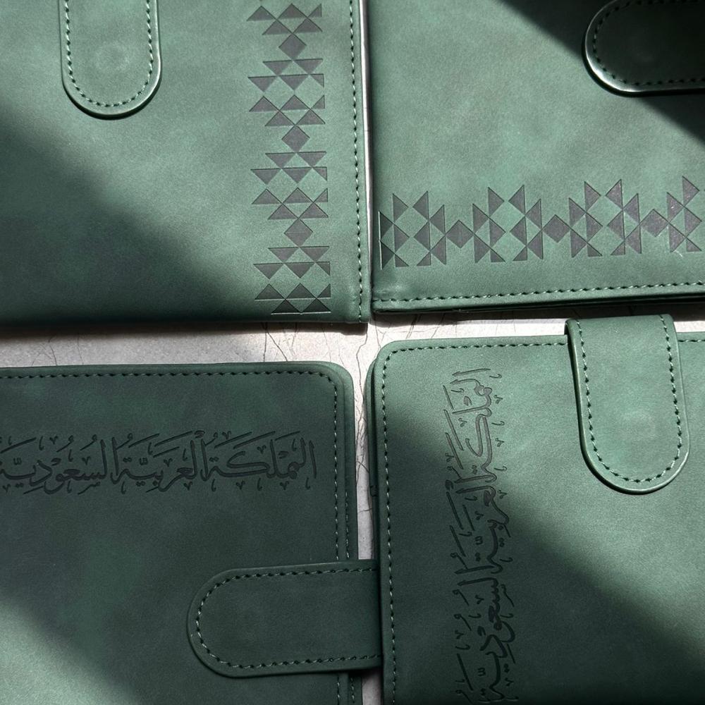 محفظة جلد فاخرة مطبوعة ببصمة الهوية السعودية، مع زخارف مستوحاة من التراث السعودي الأصيل. لتجمع بين الحداثة والهوية الوطنية في قطعة أنيقة وعملية.