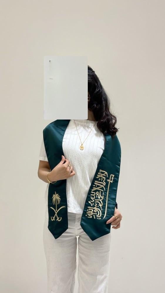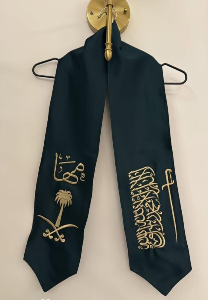 وشاح يوم اليوم الوطني 🇸🇦احتفل بيوم التأسيس مع وشاح متجر لؤلؤة الفخم .المزينبنق قماش قطيفة درجة أولىتطريز لون ذهبي مقصب ياباني